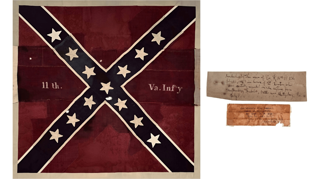 Carried by the 11th Virginia Infantry during Pickett’s Charge, a failed Confederate assault in 1863 on the Gettysburg battle’s third day, the flag was acquired after heated bidding between four phone bidders on April 26 at Fleischer’s Auctions in Columbus. The charge, named after Gen. George Pickett, who led more than 12,500 soldiers that day, resulted in mass casualties and ultimately led to the Confederacy’s defeat.
