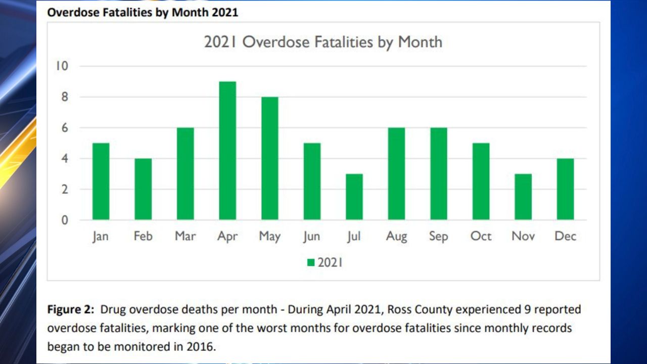 In 2020, 55 people died from drug overdose, the Ross County Fatality Review stated. That number rose to 64 in 2021. The most fatal month was April 2021, with nine people dying from drug overdose in the county.