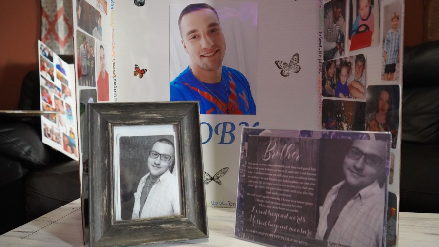 A memory board for Koby Roush in the home of his sister, Danielle Dyer.