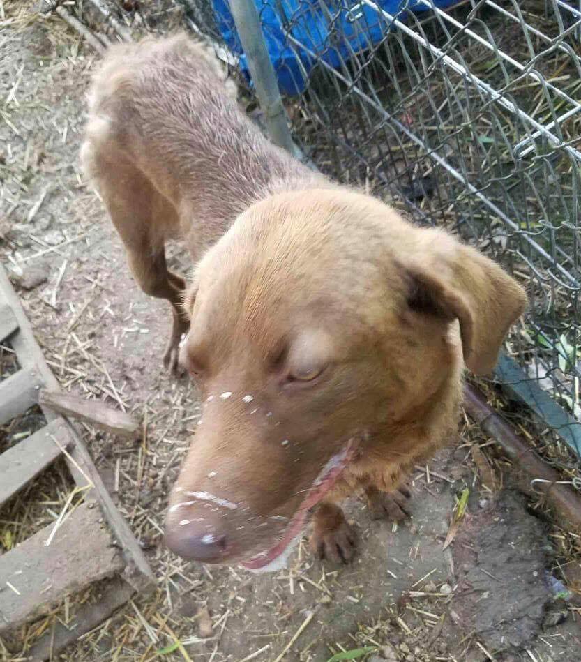 Brownie endured horrible neglect that the beginning of her life. When she was rescued, she was rail-thin and covered in soil. She was so malnourished, she had damage to her tongue. The extent of the tissue damage caused her to lose a lot of function in her tongue.