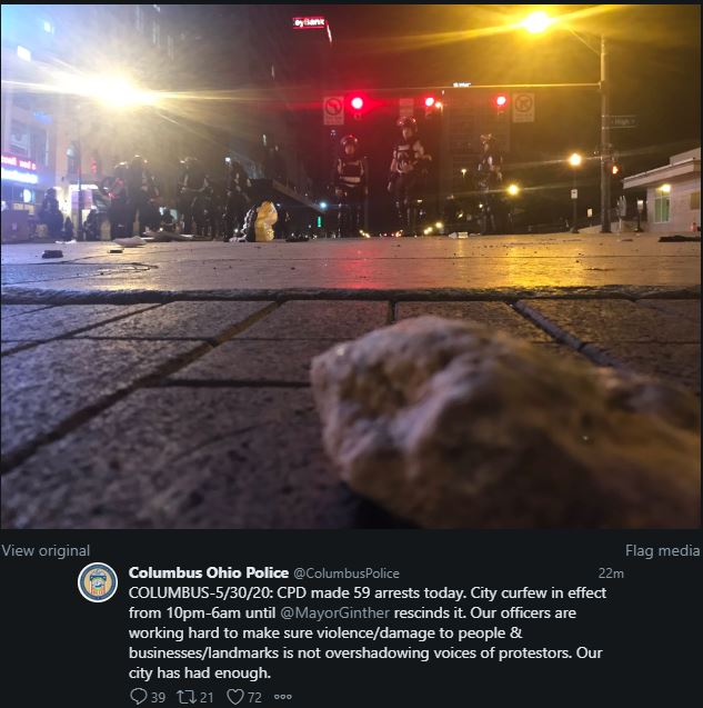 The post re-iterated the city curfew runs from 10pm until 6am “…until Mayor Ginther rescinds it.”