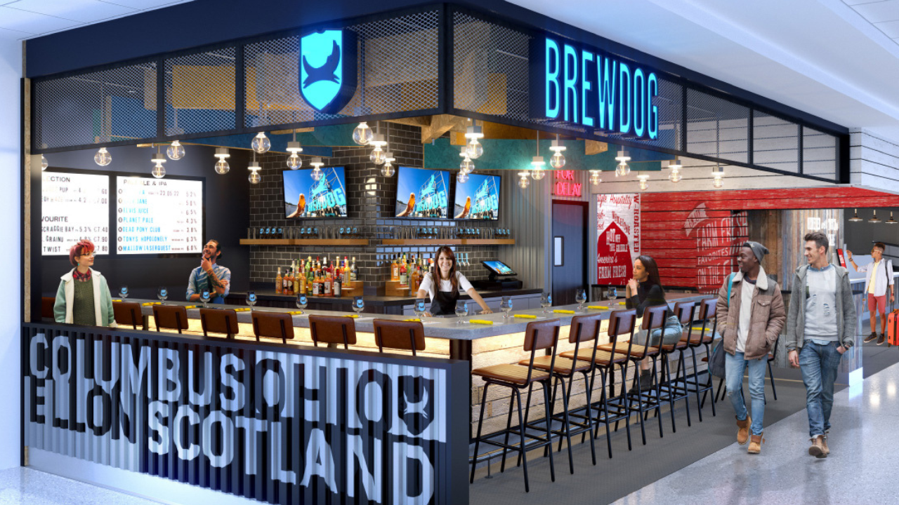 BrewDog’s new bar will mark the brand’s first airport location in the U.S. and its third overall, the first operating in Edinburgh Airport since 2018 and the second soon to open inside London Gatwick Airport.