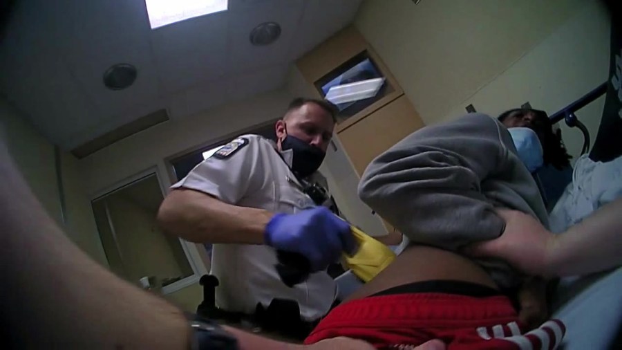As two officers checked Jackson’s pockets and the front of his pants during the pat-down, body camera video from the incident showed they pushed Jackson against a hospital bed while trying to restrain his arms. One of them tased Jackson in the back, but this did not stop him and the three struggled and fell to the floor. While on the ground and while the officer continued tasing him, Jackson fired his gun once. The officer with the taser ran out of the room while the other officer fired one shot. The bodycam video showed the officer struggling with his gun as it jammed after firing, and he remained in the corner of the room with Jackson during the rest of the incident.