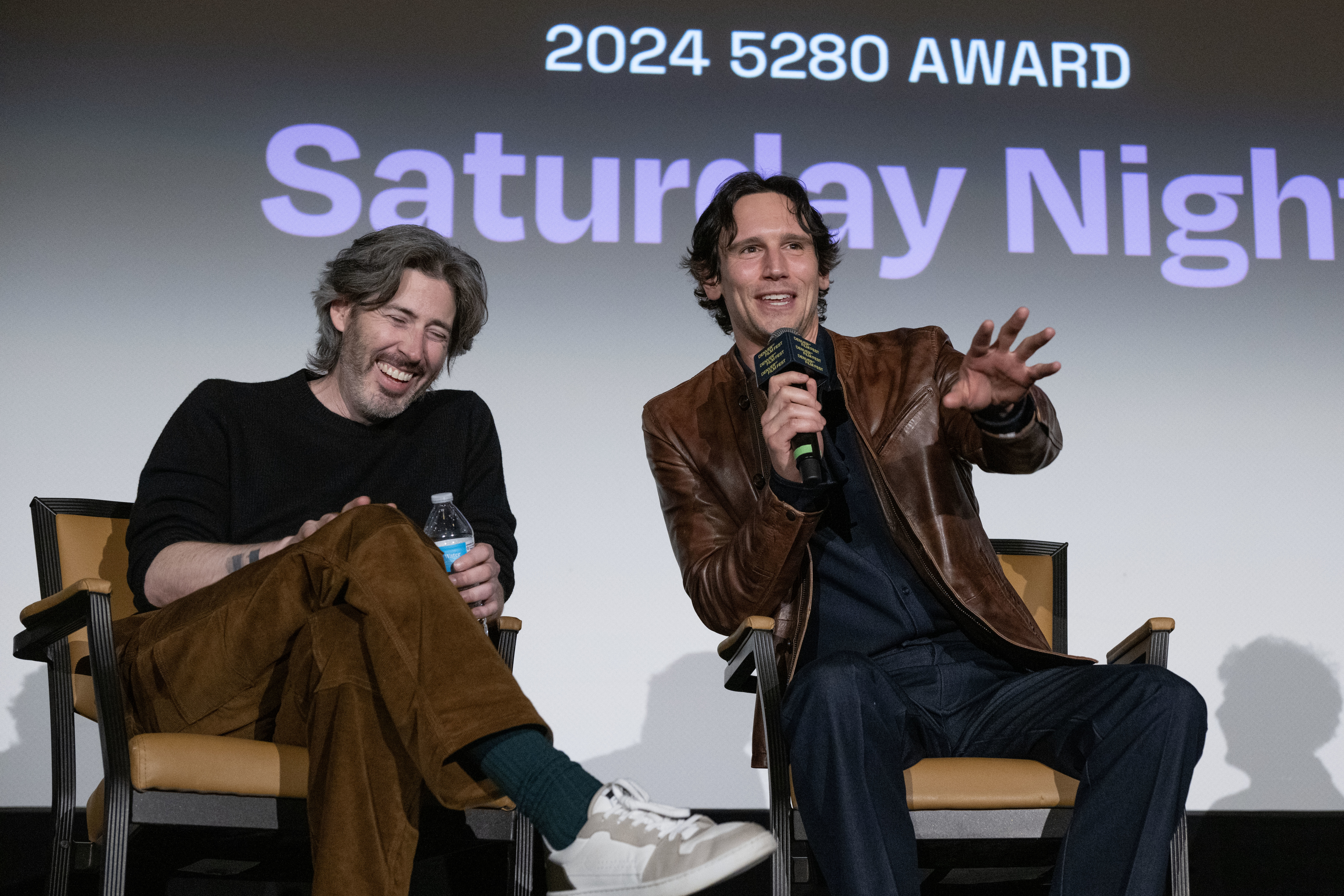 DENVER, COLORADO – NOVEMBER 07: Jason Reitman and Cory Michael Smith talk at the 47th Denver Film Festival: 5280 Award Honoring Gabriel LaBelle, Cory Michael Smith, Eric Steelberg, Gil Kenan, And Jason Reitman Of “Saturday Night” at MCA Denver at the Holiday Theater on November 07, 2024 in Denver, Colorado. (Photo by Thomas Cooper/Getty Images)