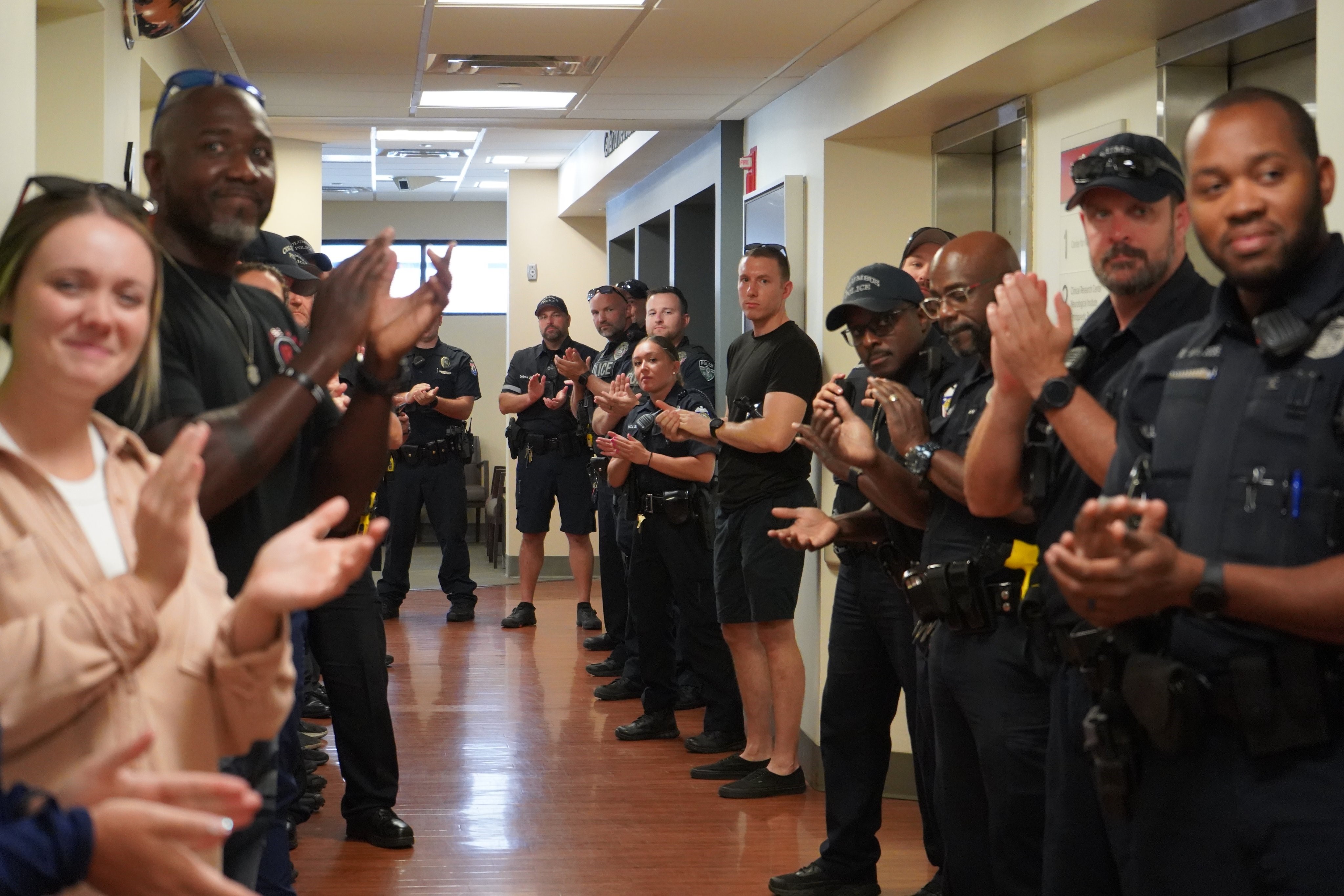 The officer was going through the steps to recovery at Ohio State’s Wexner Medical Center. The Columbus Division of Police shared photos of law enforcement officers lining the hallways of the treatment facility, applauding.