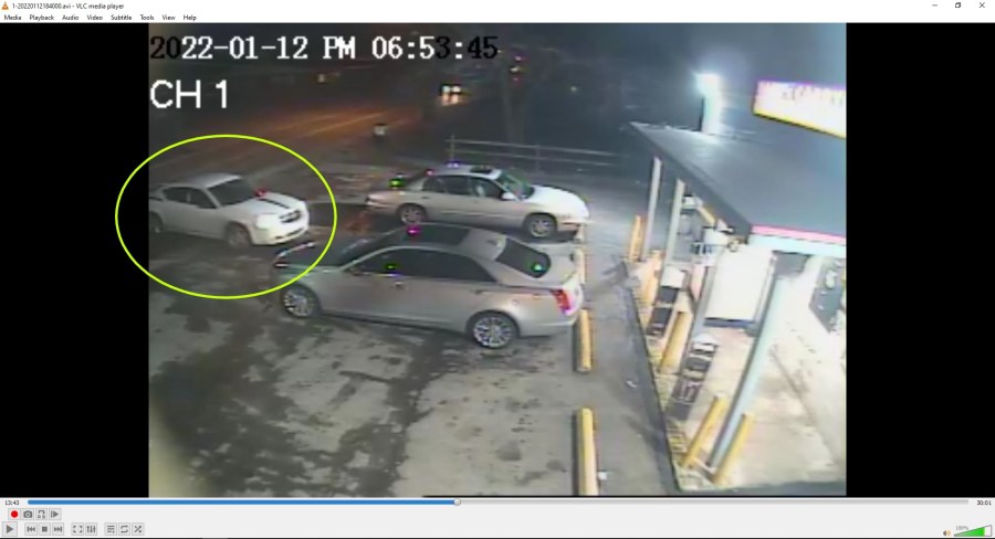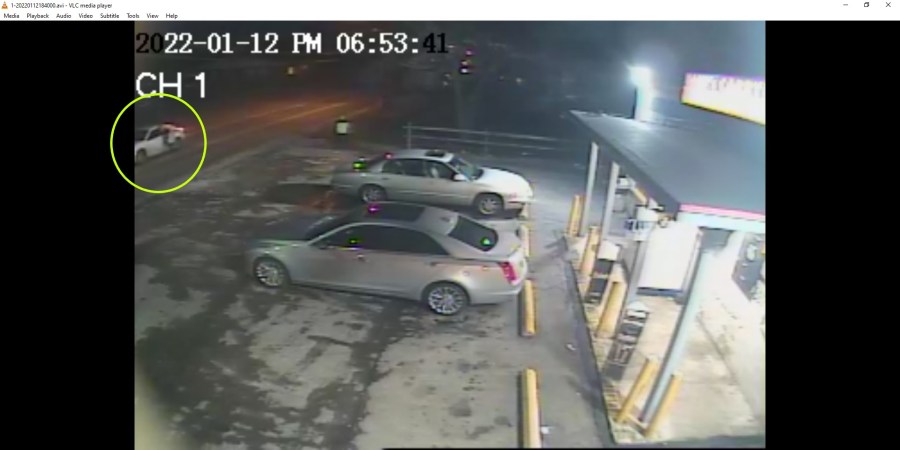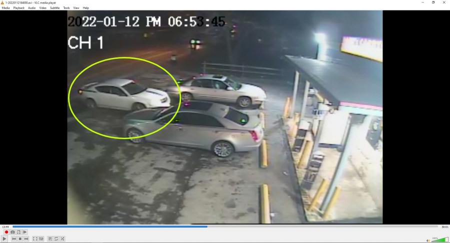 Police said the suspect drove up in a white Dodge Avenger with a dark stripe on the hood and one on the passenger side rear quarter panel. The car also appeared to have a broken driver’s side window with a dark bag of some sort covering it.