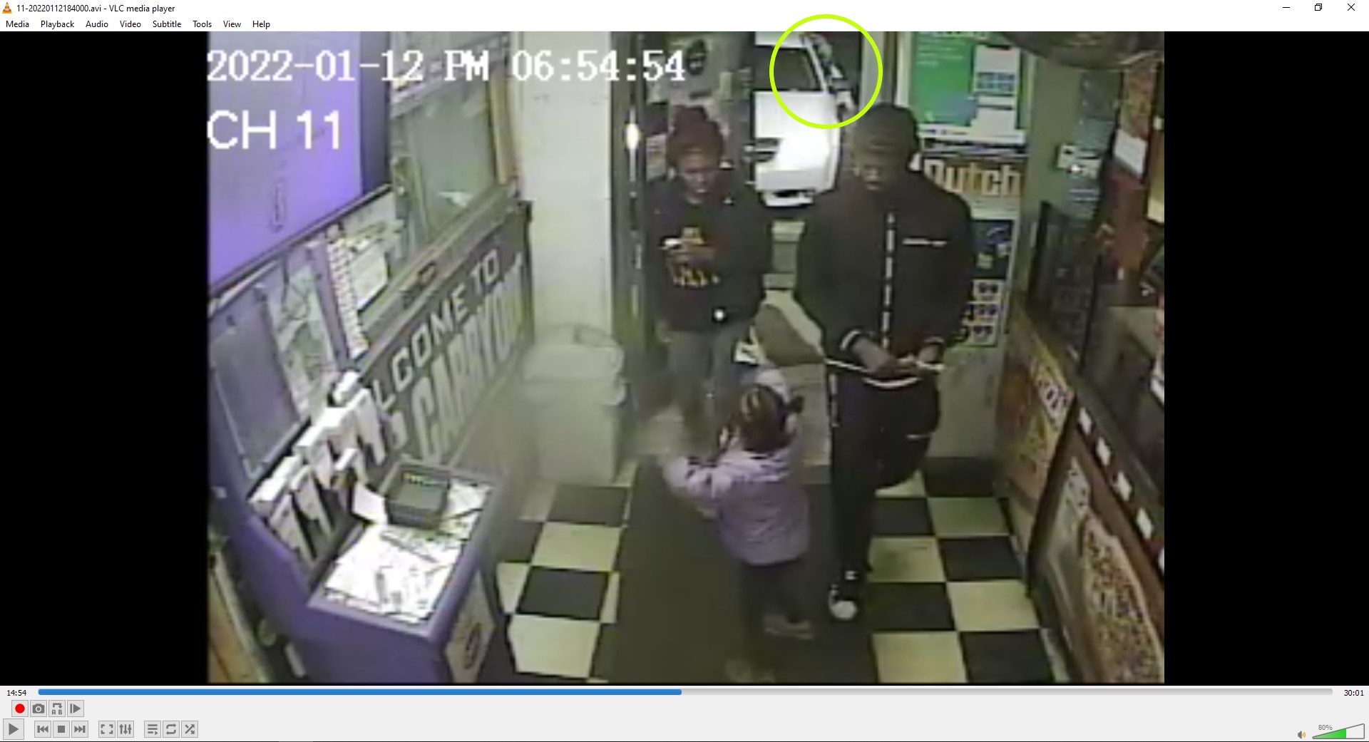 Police said the suspect drove up in a white Dodge Avenger with a dark stripe on the hood and one on the passenger side rear quarter panel. The car also appeared to have a broken driver’s side window with a dark bag of some sort covering it.