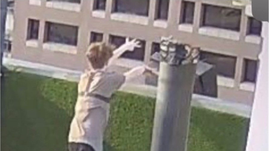 Police believe the person, who was wearing a chest-mounted GoPro camera, gained unauthorized access to the building. As the suspect was leaving the building he pulled the fire alarm, which resulted in several fire units dispatched to the building.