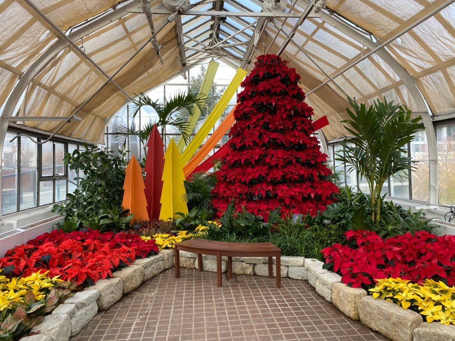 Holiday Blooms vignettes are open for viewing in the daytime and evening, featuring hundreds of poinsettias and the 10-foot poinsettia tree. The exhibition is included in general admission.