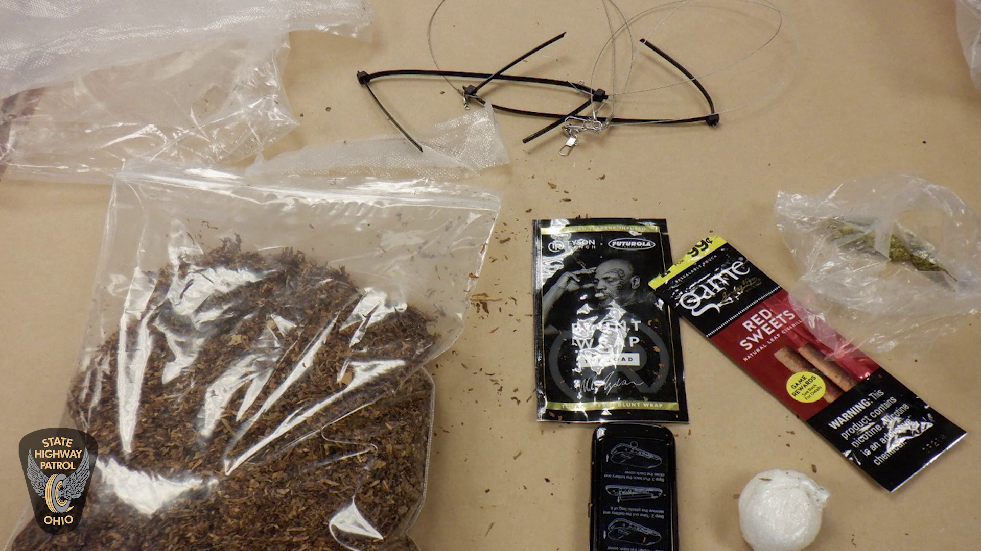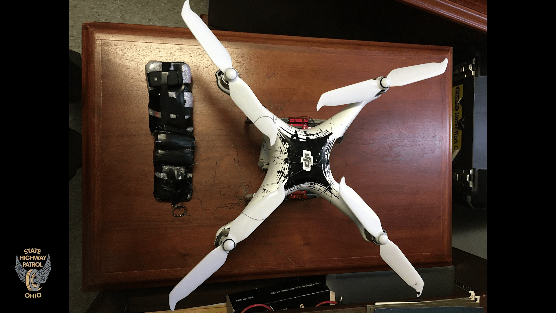 Among the other items taken were a DJI Phantom 4 drone, two firearms, several plastic bags and zip ties, drug paraphernalia, and duct tape.