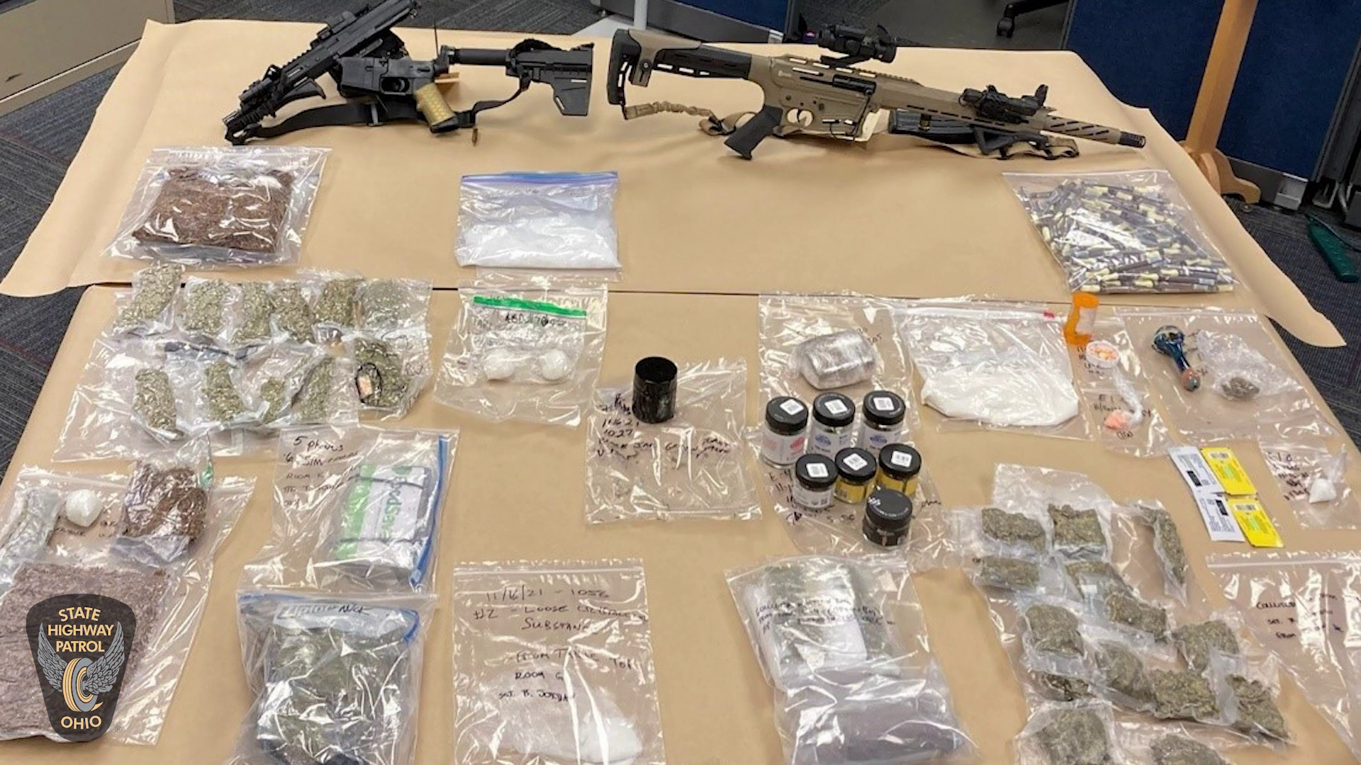 In November 2021, authorities served a search warrant at Faulkner’s residence and uncovered $319,820 worth of drugs, weapons, cell phones and contraband. OSHP said they were to be used in future deliveries to the prisons.