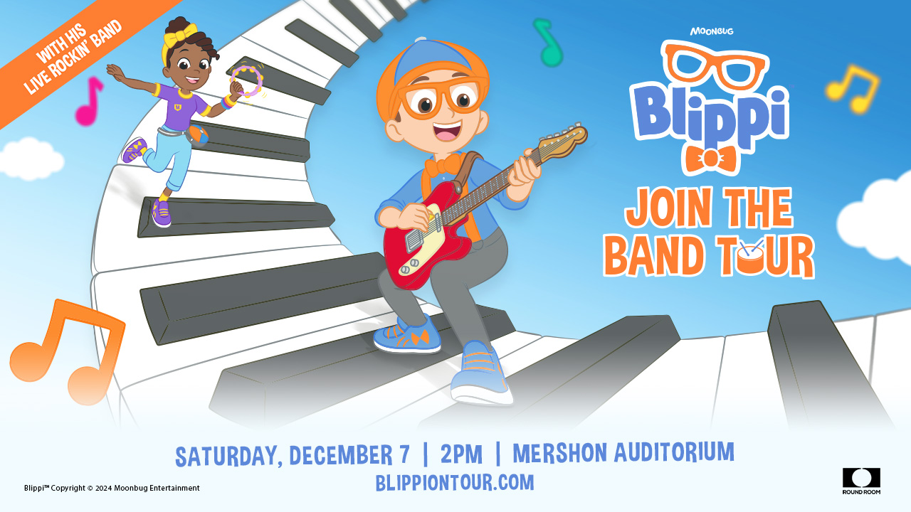 Blippi: Join the Band Tour will stop in Columbus on Saturday, Dec. 7 at Mershon Auditorium, according to Round Room Live and Moonbug Entertainment.