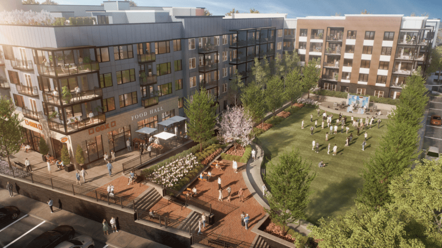 The first phase is home to 289 apartments, a more than 700-space parking garage, 37,000 square feet of commercial space, a dog park and an amphitheater. The second phase will span 1.7 million square feet with retail, more apartments, office space, restaurants, a grocery store, and other community amenities.