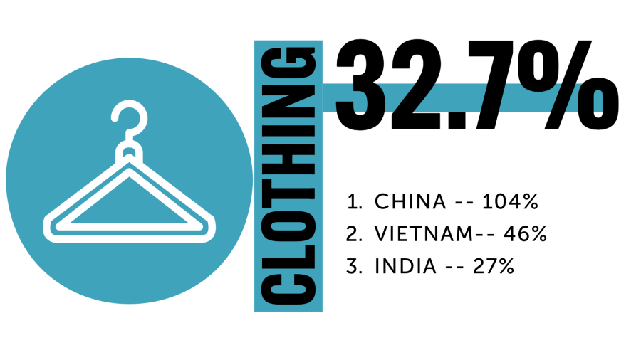 Clothing costs are predicted to increase significantly, as only 3% of clothing sold in the U.S. is made domestically. Three-fourths of the market is dominated by production from Asian countries, among the hardest hit.