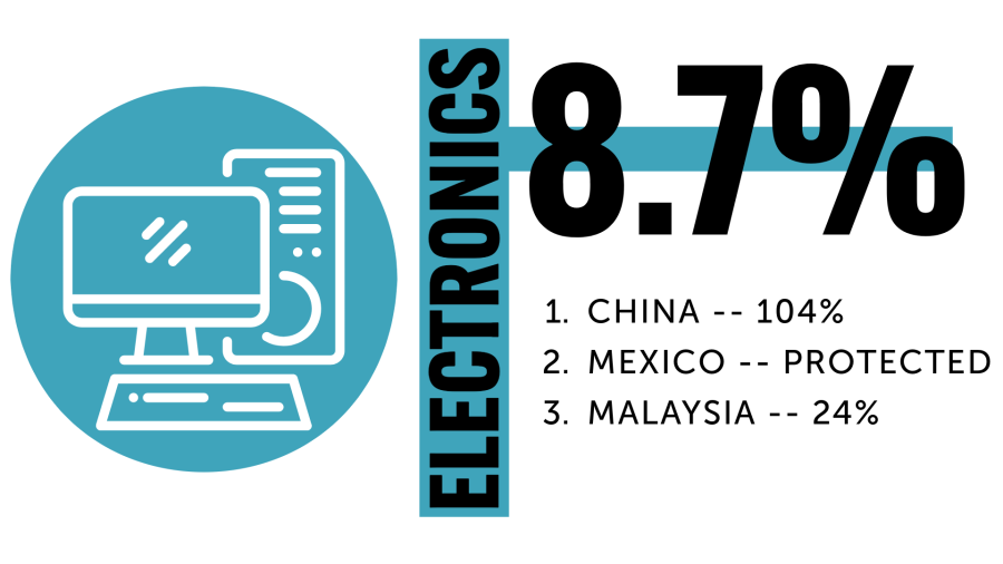 China is the top electronic manufacturer for the U.S. market. Starting on April 9, the U.S. will enact a 104% tariff rate on electronics, most likely increasing prices.
