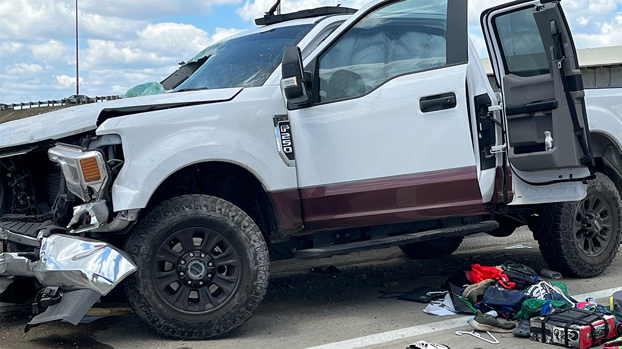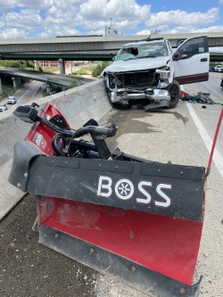 Authorities were called to the area of Interstate 70 East and I-71 South on the report of a crash around 9:20 a.m. Four cars were involved in a pile up after a white truck with a snowplow attachment struck at least one vehicle, according to the Columbus Division of Police.