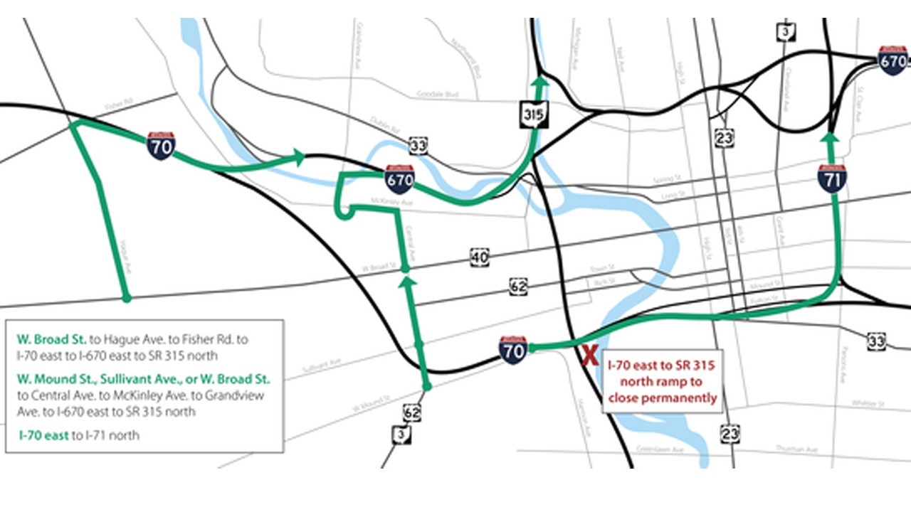 “This ramp closure will allow crews to begin work at the I-70/71/SR 315 split, which includes new access to and from downtown via Fulton and Mound Streets. The project also constructs new bridges over the Scioto River and the railroad,” the release reads.