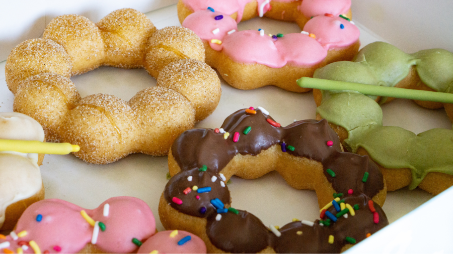 Mochi Ring’s signature doughnuts are created from a Japanese rice cake made from “glutinous” rice commonly found in east Asian cuisines. The chain’s doughnuts come a variety of colorful flavors, including dragon fruit, pumpkin spice, cheddar cheese, s’more, matcha, coffee, coconut, brown sugar milk tea, churro and more.