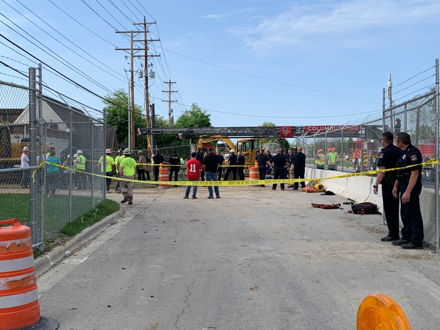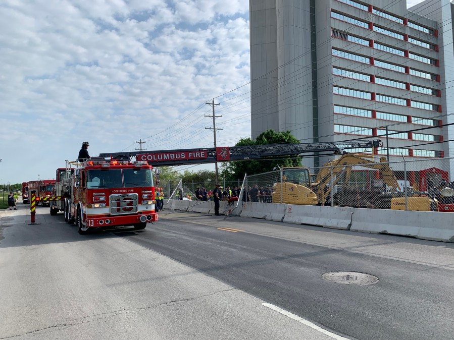 Columbus Fire said the man was a construction worker and called 911 around 8:40 a.m. after falling in the hole at the 2000 block of Kenny Road.