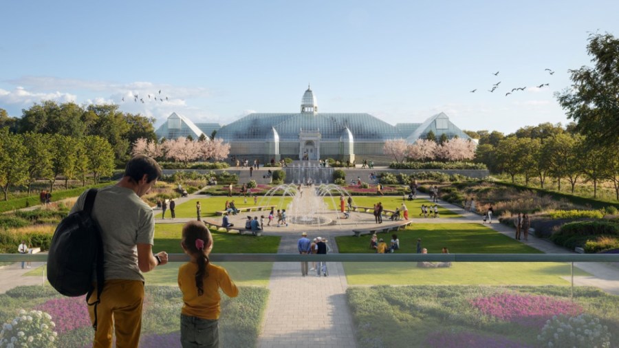 Renderings for the proposed renovations show just how different the conservatory will look at the end of the plan. A new main entrance building to the gardens will be built from the ground up, and include a restaurant and gift shop. The existing botanical gardens will make way for a center “Grand Mallway Garden” and a north and south garden flanking it. With visitors entering a separate entrance building, the existing main conservatory will undergo major repurposing.