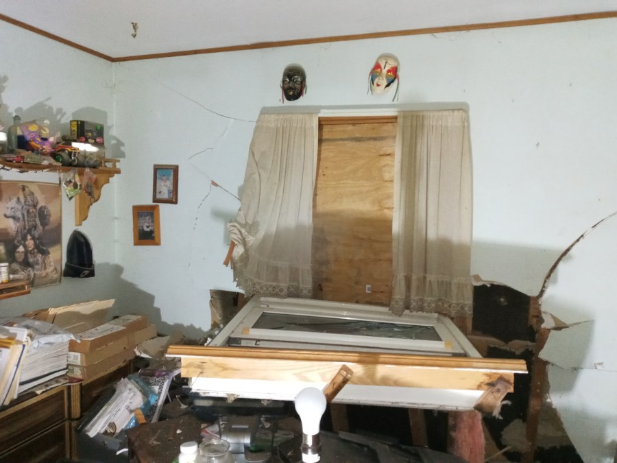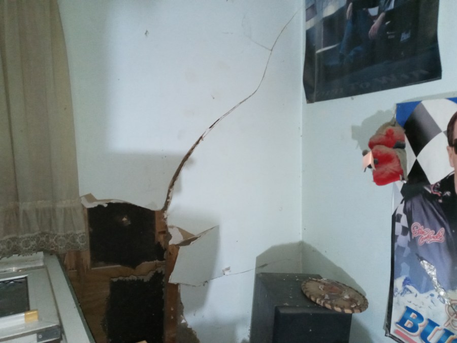 Another hole on the side of Kent’s house was also made by a vehicle. According to Kent, that happened about nine years ago.
