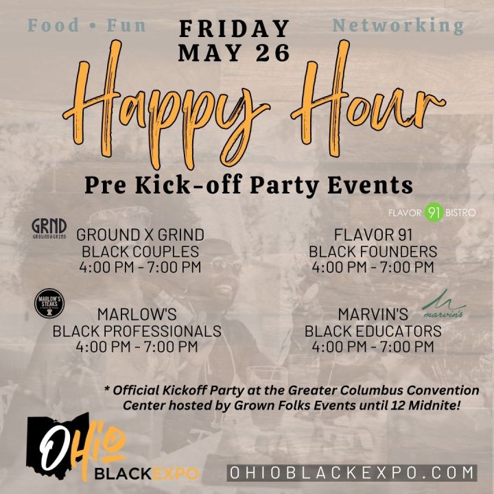 - The expo is hosting four happy hours mixers at Ground and Grind in Olde Towne East, Marvin’s in south Columbus, Flavor 91 in Whitehall and Marlow’s in Gahanna.