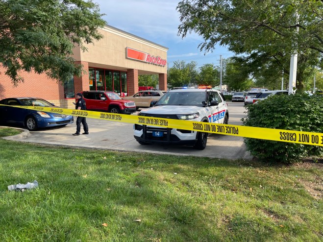 CPD believes the incident is linked to a string of robberies, in which two suspects have reportedly targeted area auto parts retail stores. The investigation continues and the entire AutoZone parking lot is taped off.