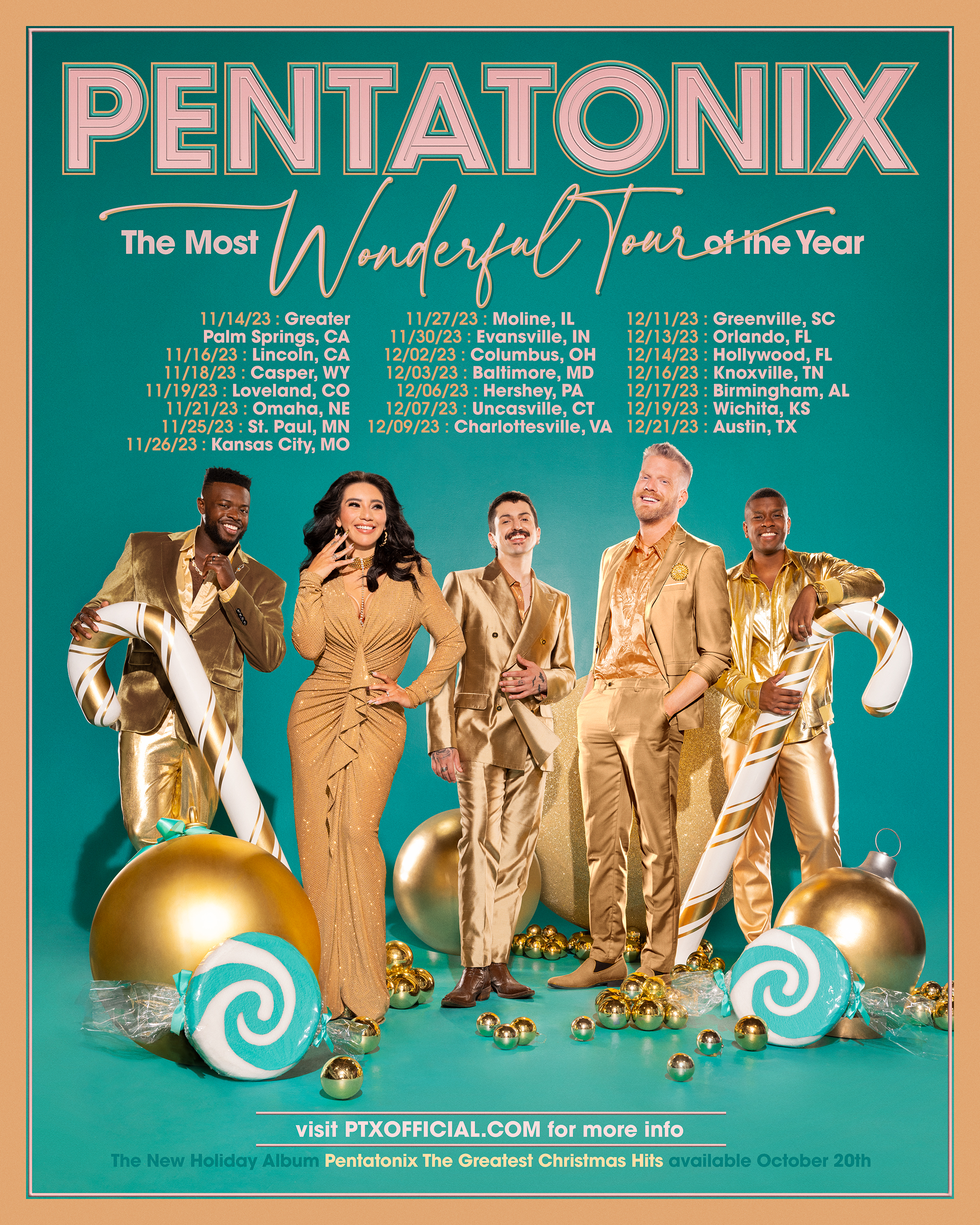 COLUMBUS, Ohio (WCMH) — Award-winning a cappella group Pentatonix officially announced the dates for their upcoming holiday tour ‘The Most Wonderful Tour of the Year.’