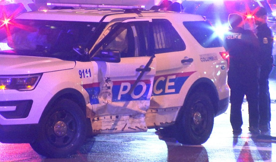 According to police, a car slammed into the driver’s side of a CPD cruiser at the intersection of Marconi Boulevard and West Broad Street in Downtown Columbus. Two officers were in the cruiser as was a prisoner, who was being transported from police headquarters to jail.