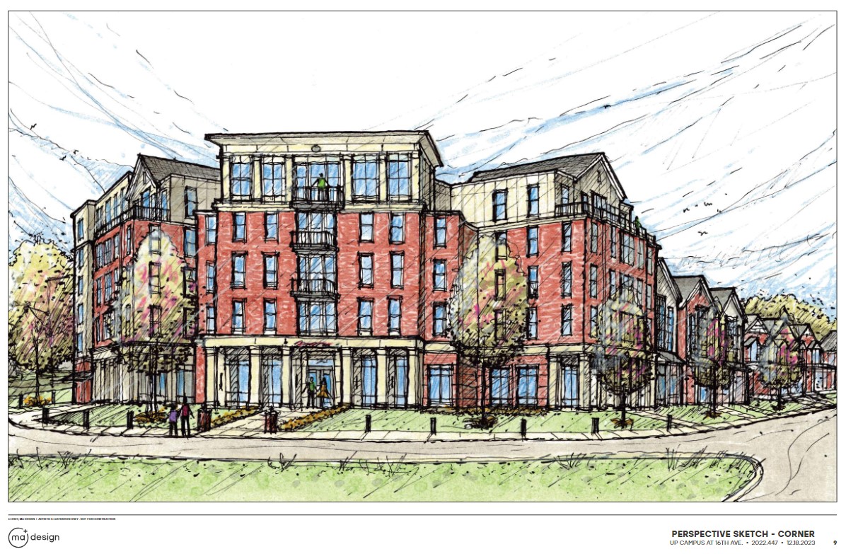 Representatives from Chicago-based developer UP Campus Properties on Monday presented their plans for a student apartment complex on East 16th and Waldeck avenues, on the site of Summit United Methodist Church. With a significant cut to square footage, fewer stories and a greater emphasis on matching the architecture of existing residential buildings, members of the University Impact District Review Board acknowledged the compromises UP Campus had made since proposing the project in July.