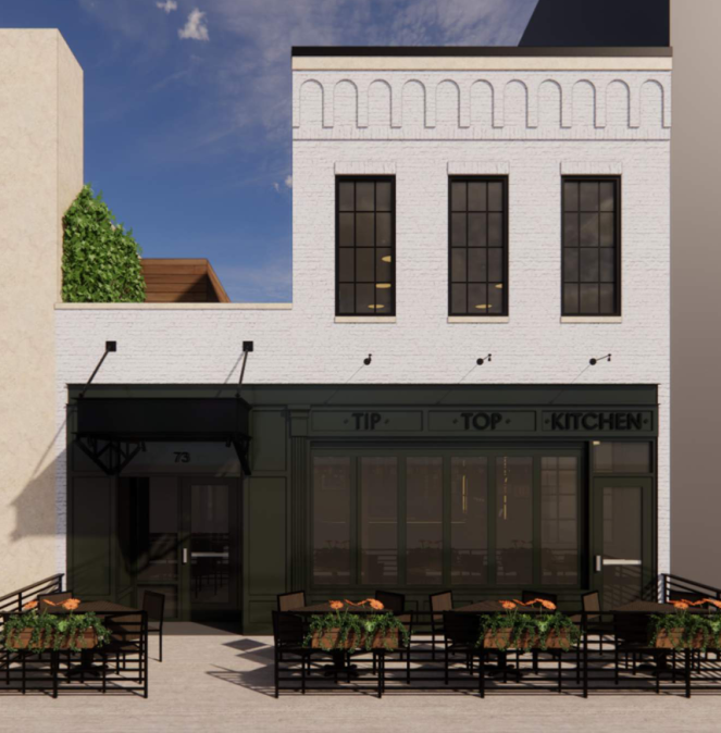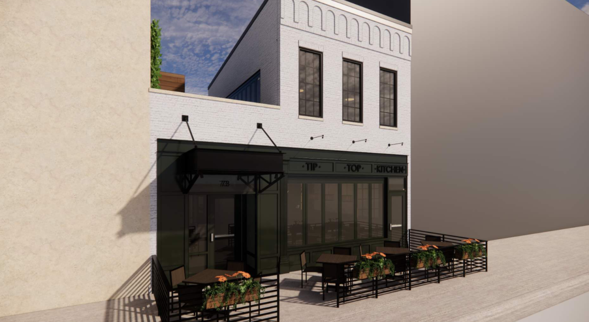 Changes include a newly painted storefront, the removal of the existing mansard roof, a restoration of the original brick veneer and an indoor remodel. Tip Top’s current sign would also be removed, with new signage and a canopy being added to the storefront.