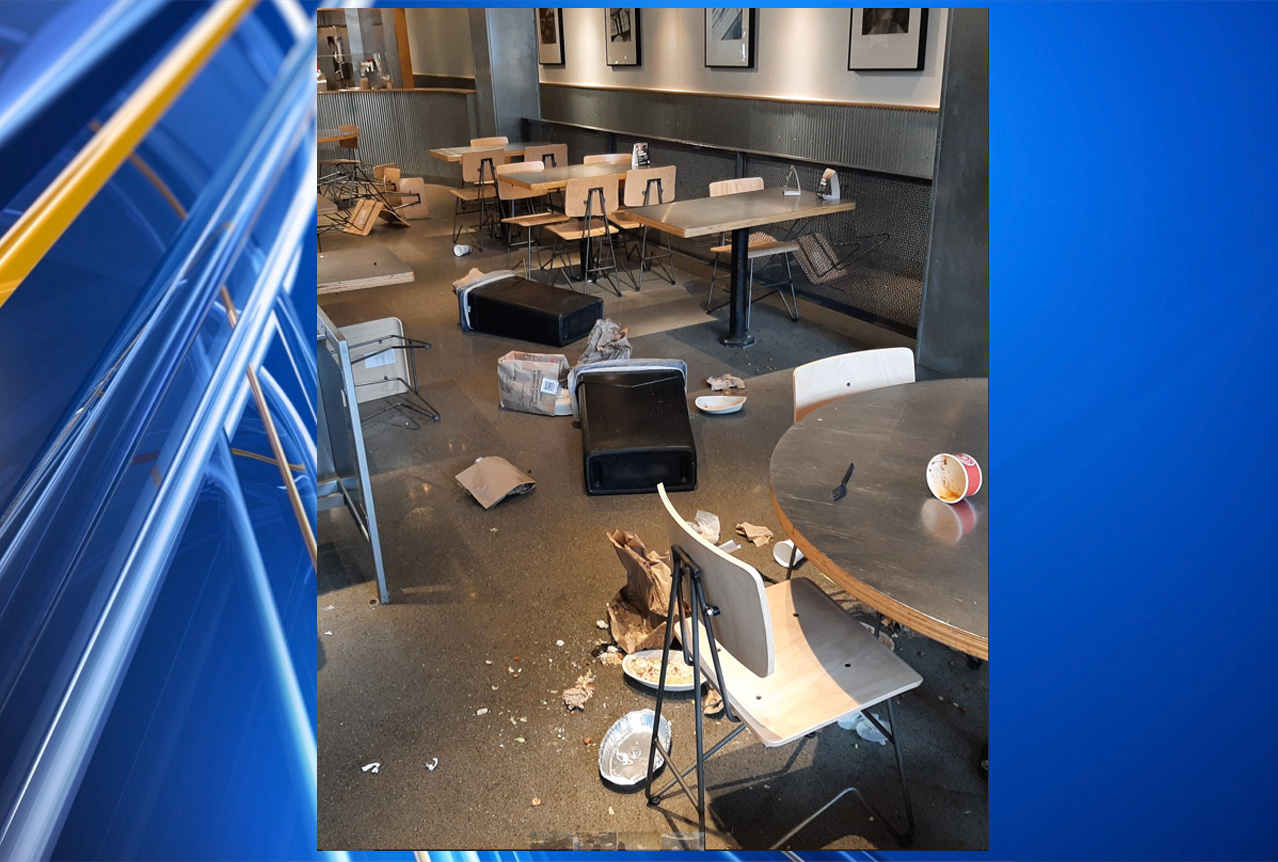 They then damaged the restaurant by throwing chair and trash cans. On their way out of the restaurant one of the suspects took a cellphone from a person.