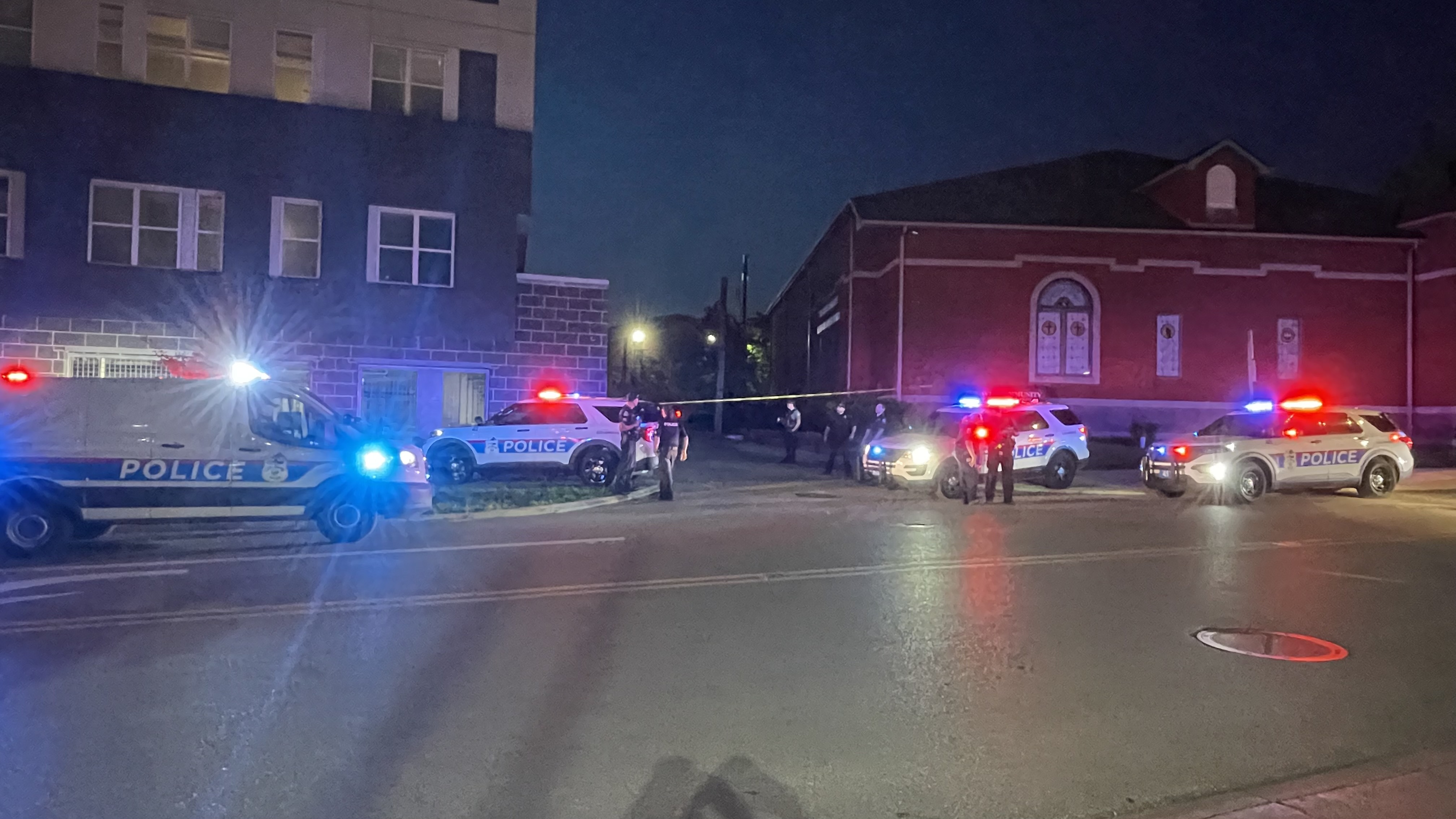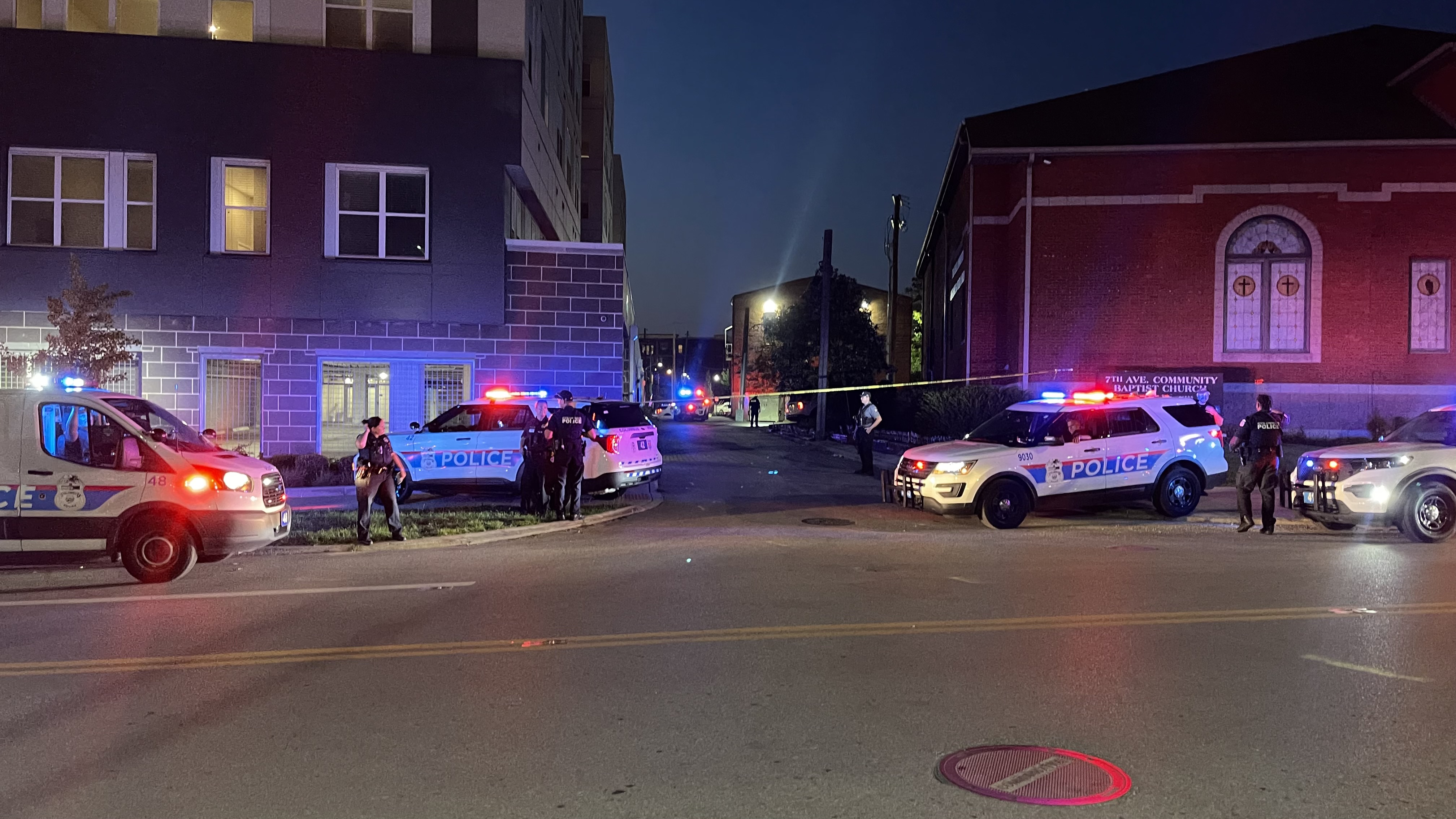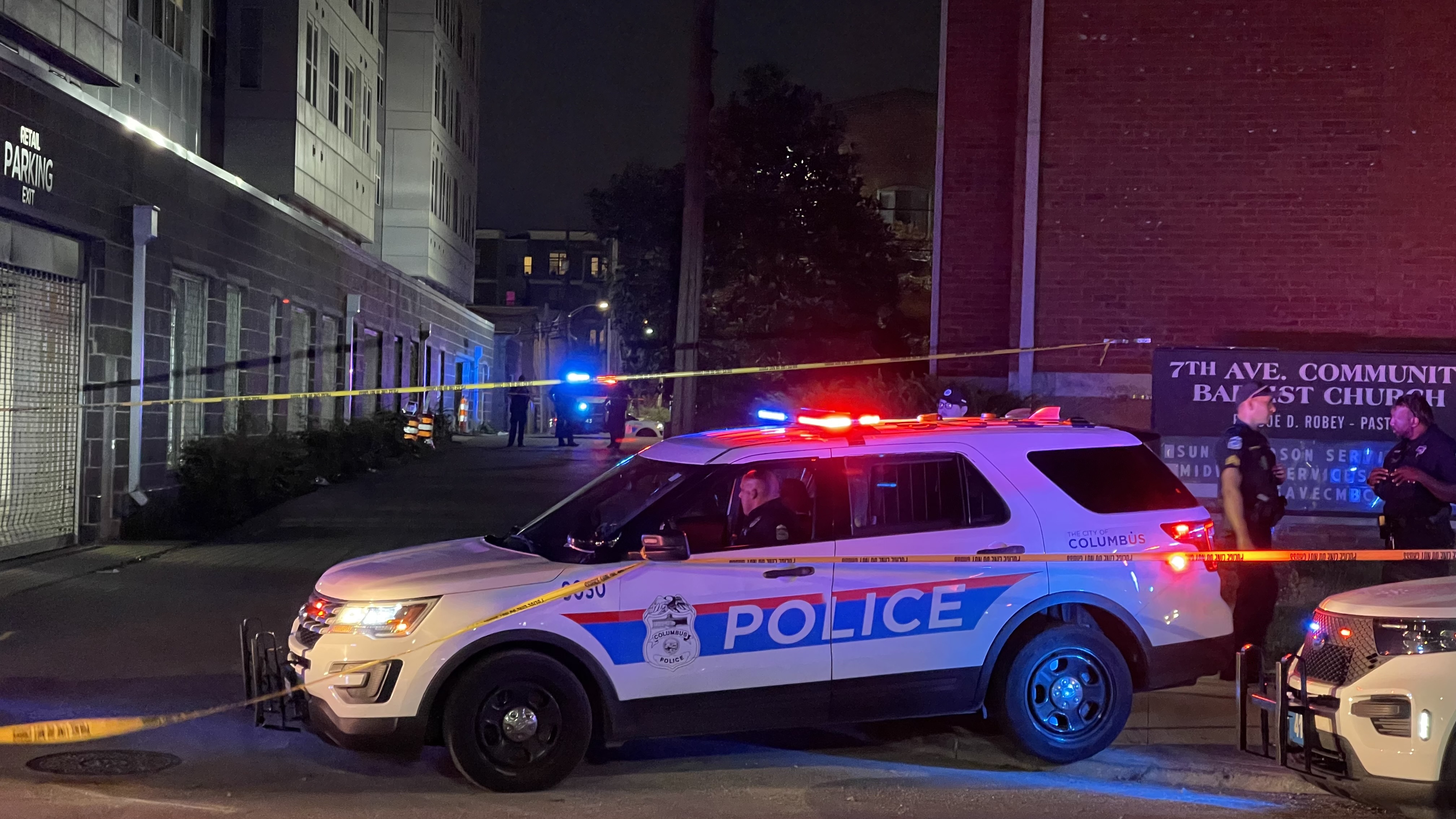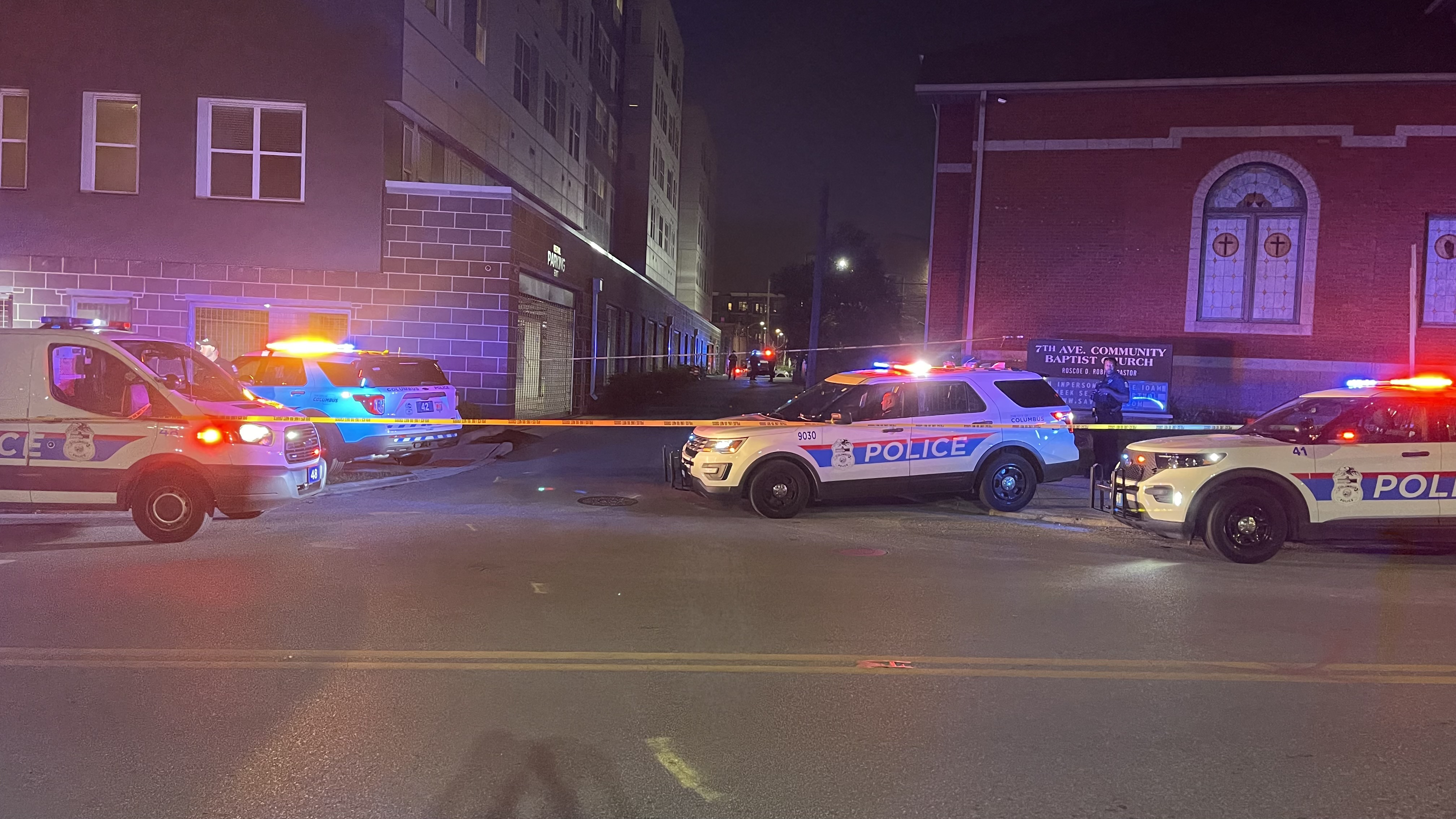 Photos showed Columbus police had set crime scene tape up, with multiple officers and cars posted in a perimeter on both sides of a road between 7th Ave. Community Baptist Church and the building housing Uncommon Columbus.