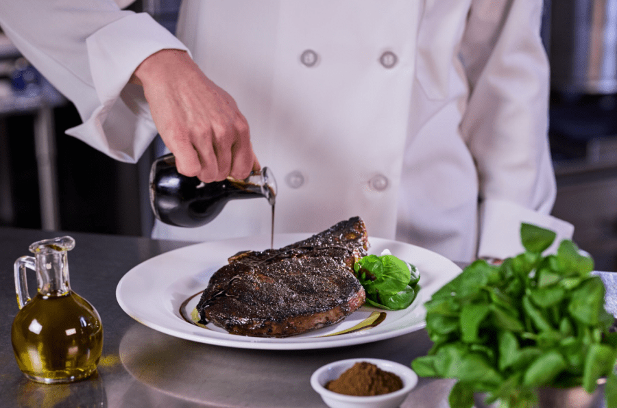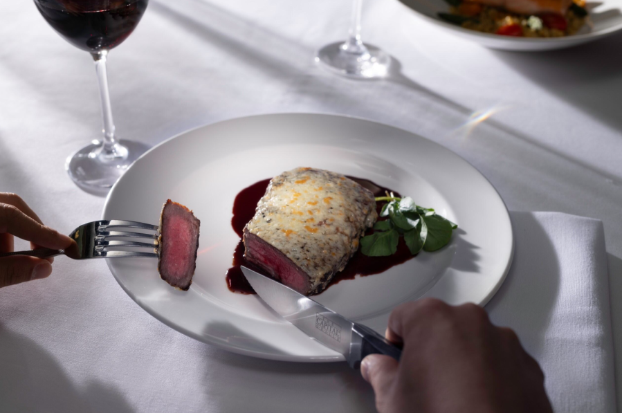The restaurant’s steaks are dry-aged in-house for 18 to 24 days and hand cut daily by a butcher. Popular menu items include the Dry Aged Bone-in NY Strip with Shallot Butter as well as the Sliced Filet Mignon with Cipollini Onions, Wild Mushrooms and Fig Essence, according to the restaurant.