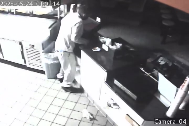 Security cameras show that after the person went behind a counter, flipped over both monitors, and pulled a cash register off of a counter. The suspect threw the cash drawer onto the ground twice before it popped open.
