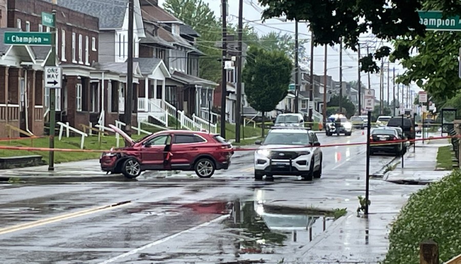A sergeant at the scene of the crash reported that a red SUV was seen driving in the wrong direction on South Champion Avenue, a one-way street. Two officers in a police cruiser attempted to stop the driver, but their vehicle was T-boned by the SUV and it continued south on South Champion Avenue before it stopped near East Whittier Street.