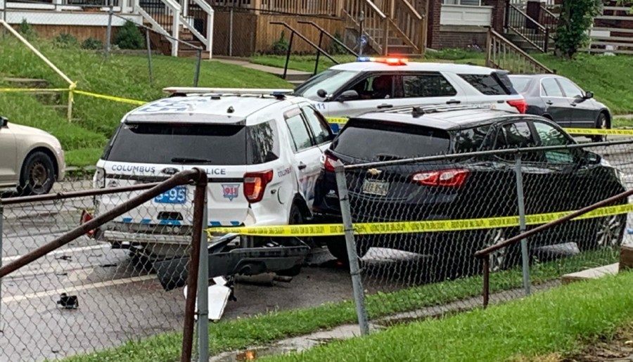 According to Columbus police a traffic collision occurred near the intersection of South Champion Avenue and Stanley Avenue at 10:57 a.m. in the Southern Orchards neighborhood. Three people were injured, including two officers, who were taken to Grant Medical Center following the crash.