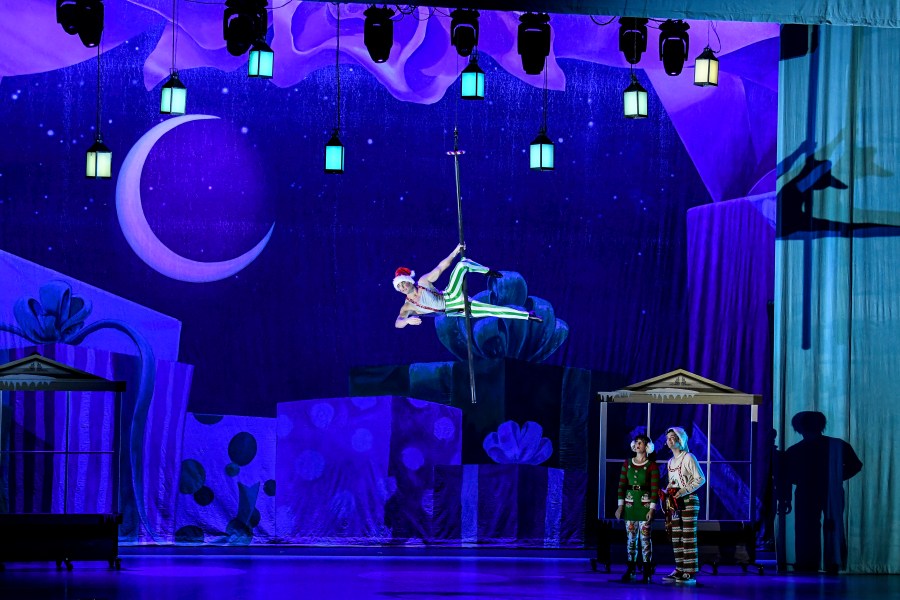 • Amid a background of wintery sets and scenery, Holidaze is a family-friendly production with singers, dancers, toy soldiers and reindeer with an ensemble of aerial circus acts, jugglers, skippers, acrobatics and more.