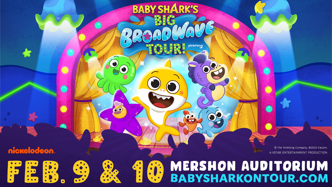 • Join Baby Shark and his fishy friends on an undersea adventure. To save their beloved Party Puddle Theatre, Baby and the squiddos must dive into action to create a flowstopping, splash-hit Broadwave swimsation.