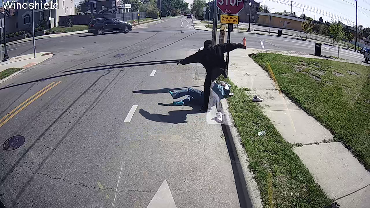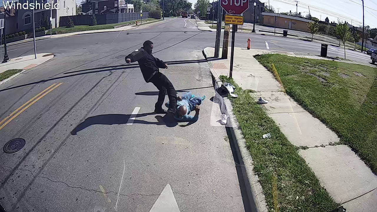 Palmer had gotten off the bus and the two argued again. When the 63-year-old man began to walk away, the security camera then showed Palmer follow him from behind and throw a “haymaker.” Police told NBC4 that the punch broke the passenger’s jaw. He landed face-first on the curb, then rolled around in the street while Palmer kicked him in the head and back.