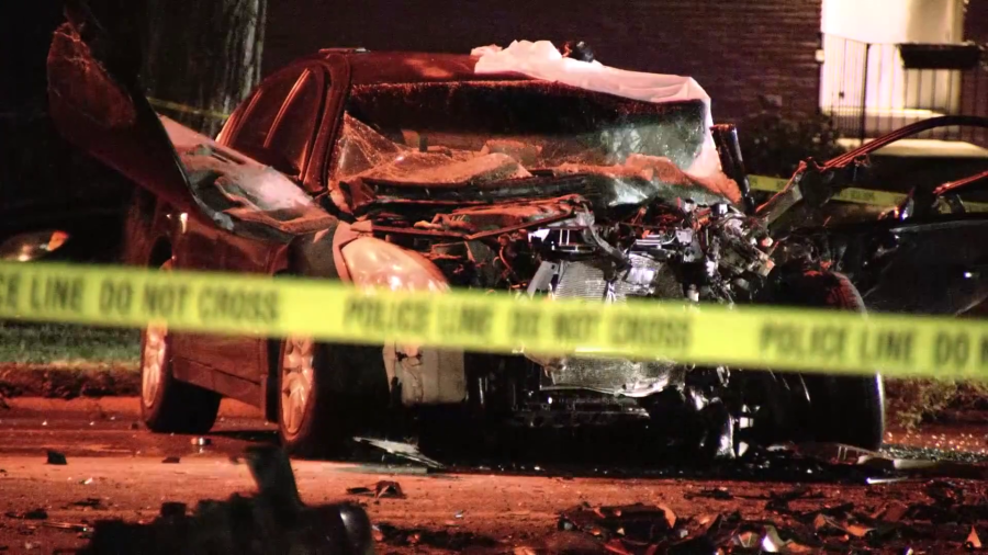 The driver of the blue sedan, an adult female, was pronounced dead at the scene at 3:38 a.m. The driver of the red sedan was taken to the hospital in critical condition, while a third person was also hospitalized in critical condition.