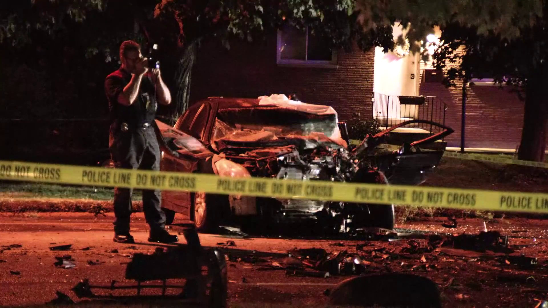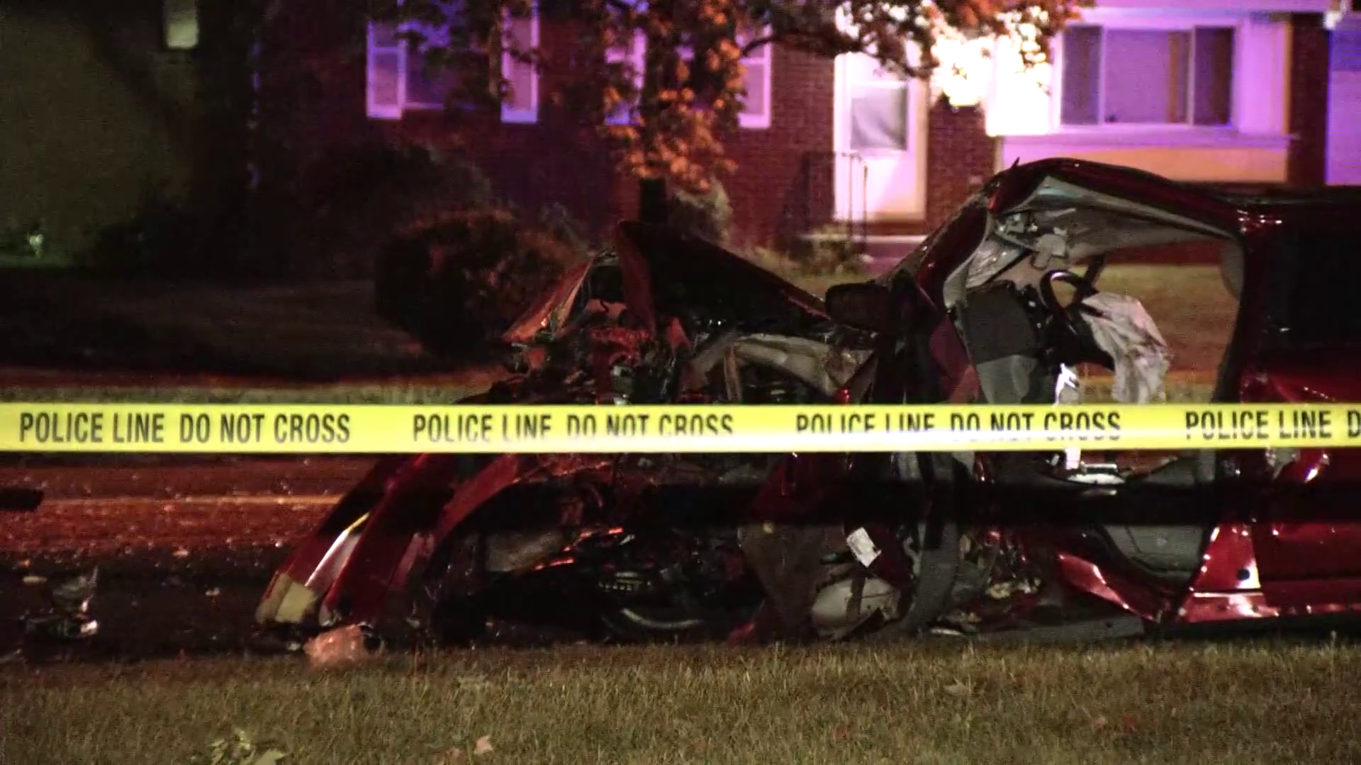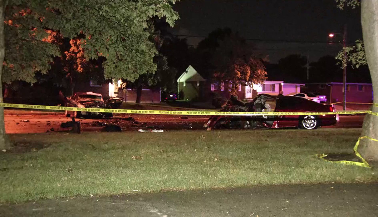 The driver of the blue sedan, an adult female, was pronounced dead at the scene at 3:38 a.m. The driver of the red sedan was taken to the hospital in critical condition, while a third person was also hospitalized in critical condition.