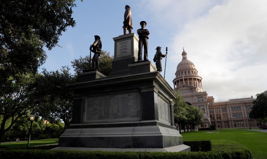 AUSTIN, Texas (AP) — Just past the gate at an entrance to the Texas Capitol, a large monument honoring the soldiers of the Confederacy looms, with towering statues and an inscription that reads, “Died for state rights guaranteed under the Constitution.”