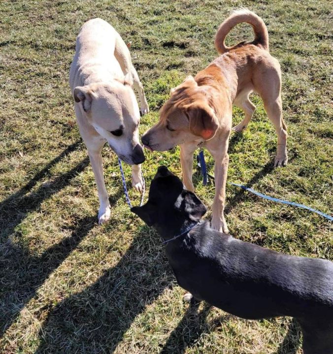 Officers Chad Gote and Maurice Irish received a report that dogs were found at Delaware Wildlife Area on Horseshoe Road in Ashley, near the shooting range. A social media post noted there wasn’t an owner with the animals when they were found.