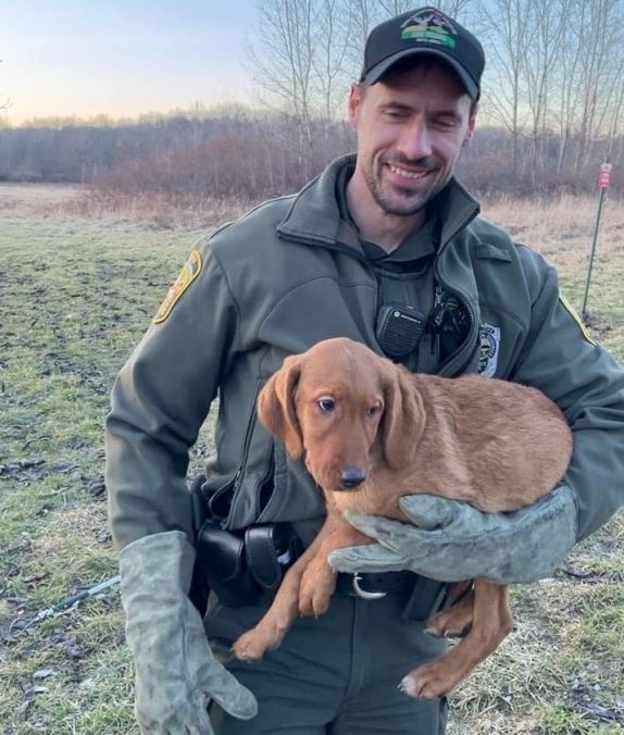 Officers Chad Gote and Maurice Irish received a report that dogs were found at Delaware Wildlife Area on Horseshoe Road in Ashley, near the shooting range. A social media post noted there wasn’t an owner with the animals when they were found.