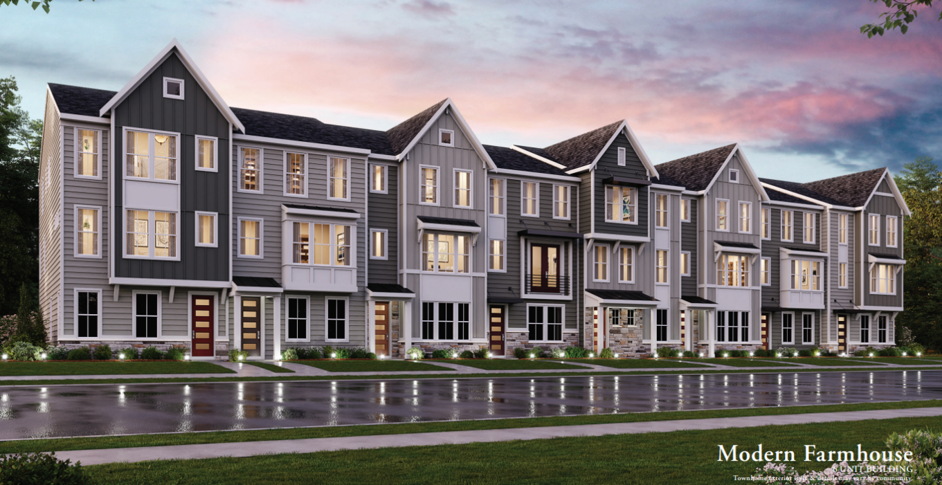 “Tustin” from Fischer Homes’ Midtown Collection is eyed as the design inspiration for the site, including a “contemporary classic” home design, a “modern farmhouse” design, and an “American modern” design. Each townhome includes features like a recreation room, a study or a guest suite, a large pantry and an outdoor living space.