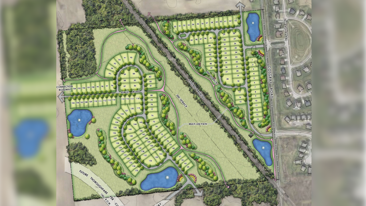 Faris Planning and Design’s proposal called for the “Farms at Cosgray” development to feature 51 single-family homes west of Cosgray Road and east of the existing railroad. If completed, the development would have also featured 14 acres of open green space and a large 200-foot buffer along the railroad.