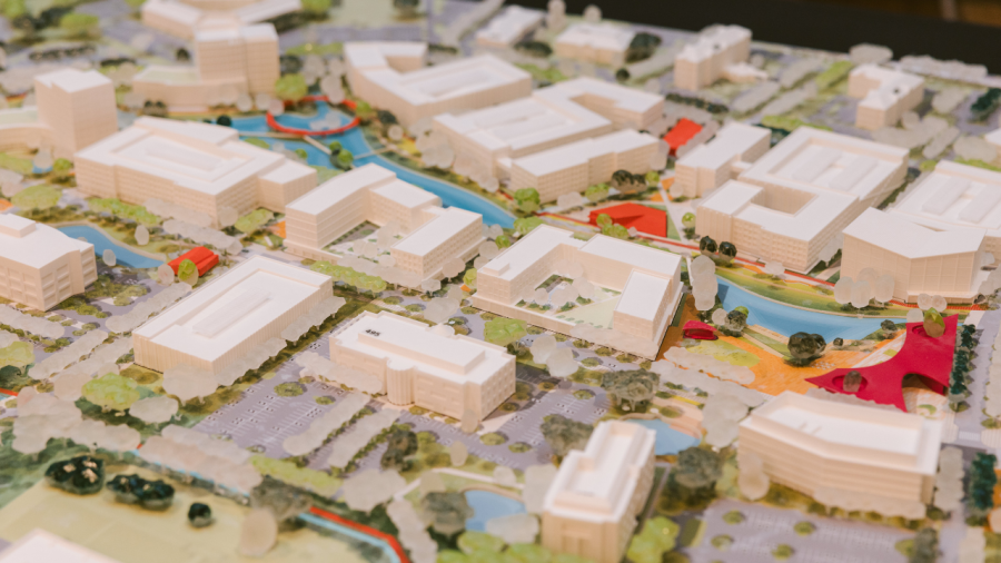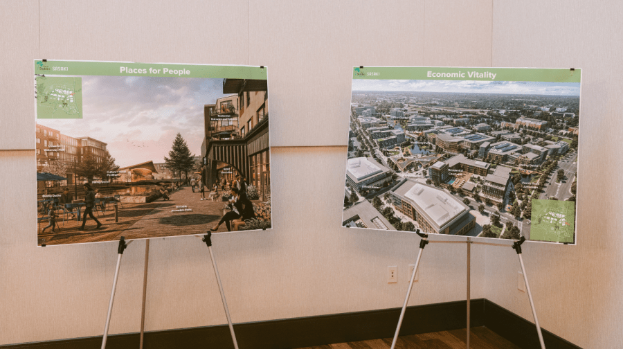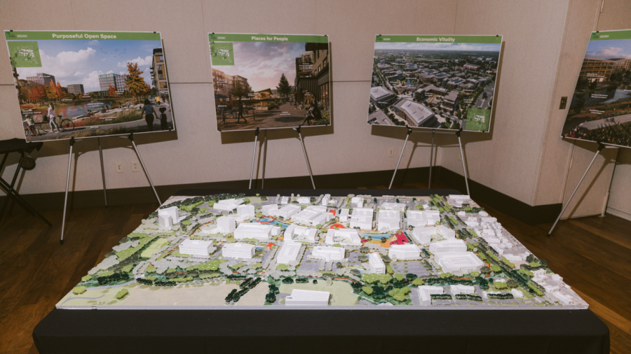 The city’s October economic development strategy event showed off renderings and a 3-D model of the Metro Center revitalization, including the construction of a multi-family residential development, shopping and dining options, an art and cultural space, and a water feature snaking through the district.