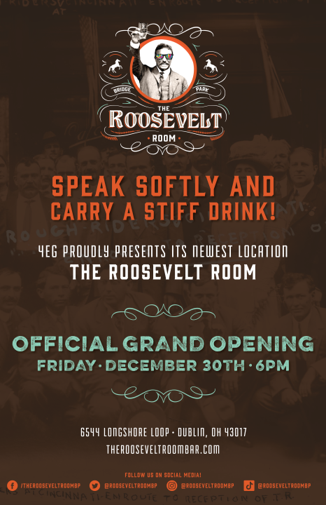 The Roosevelt Room in Dublin’s Bridge Park at 6544 Longshore Loop across from the AC Hotel is welcoming guests for the first time on Friday. The opening marks the second Roosevelt Room in Ohio after a Liberty Center location north of Cincinnati opened in 2017. Doors open beginning at 6 p.m. Friday for the bar’s grand opening.