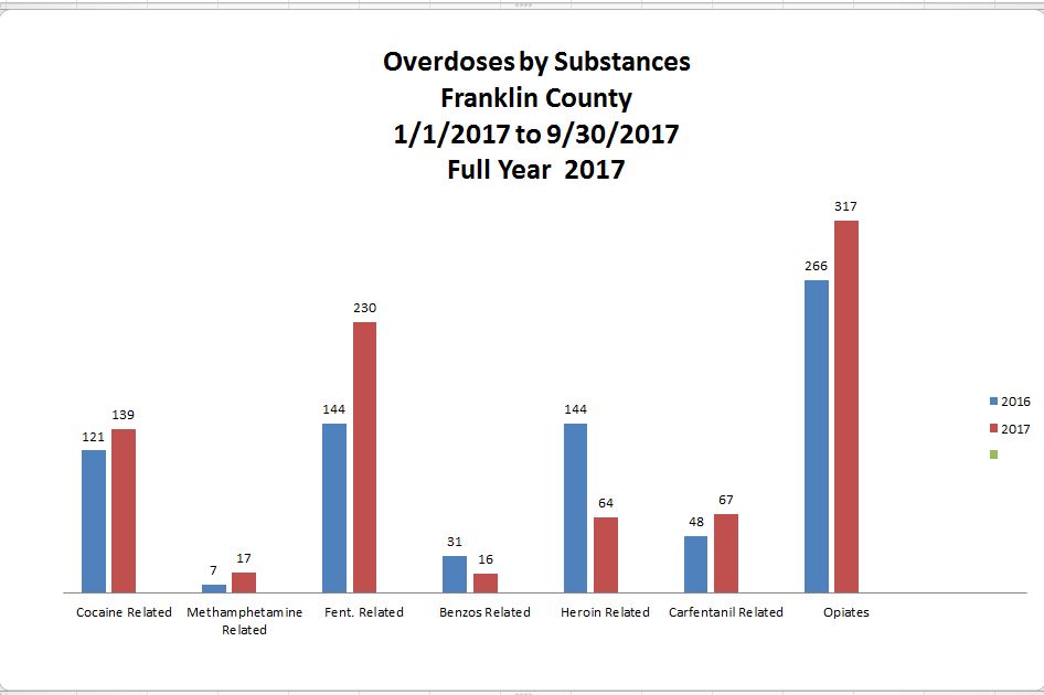 According to Franklin County Coroner Dr. Anahi Ortiz, between January and September of 2017 there were 383 overdose deaths in the county.